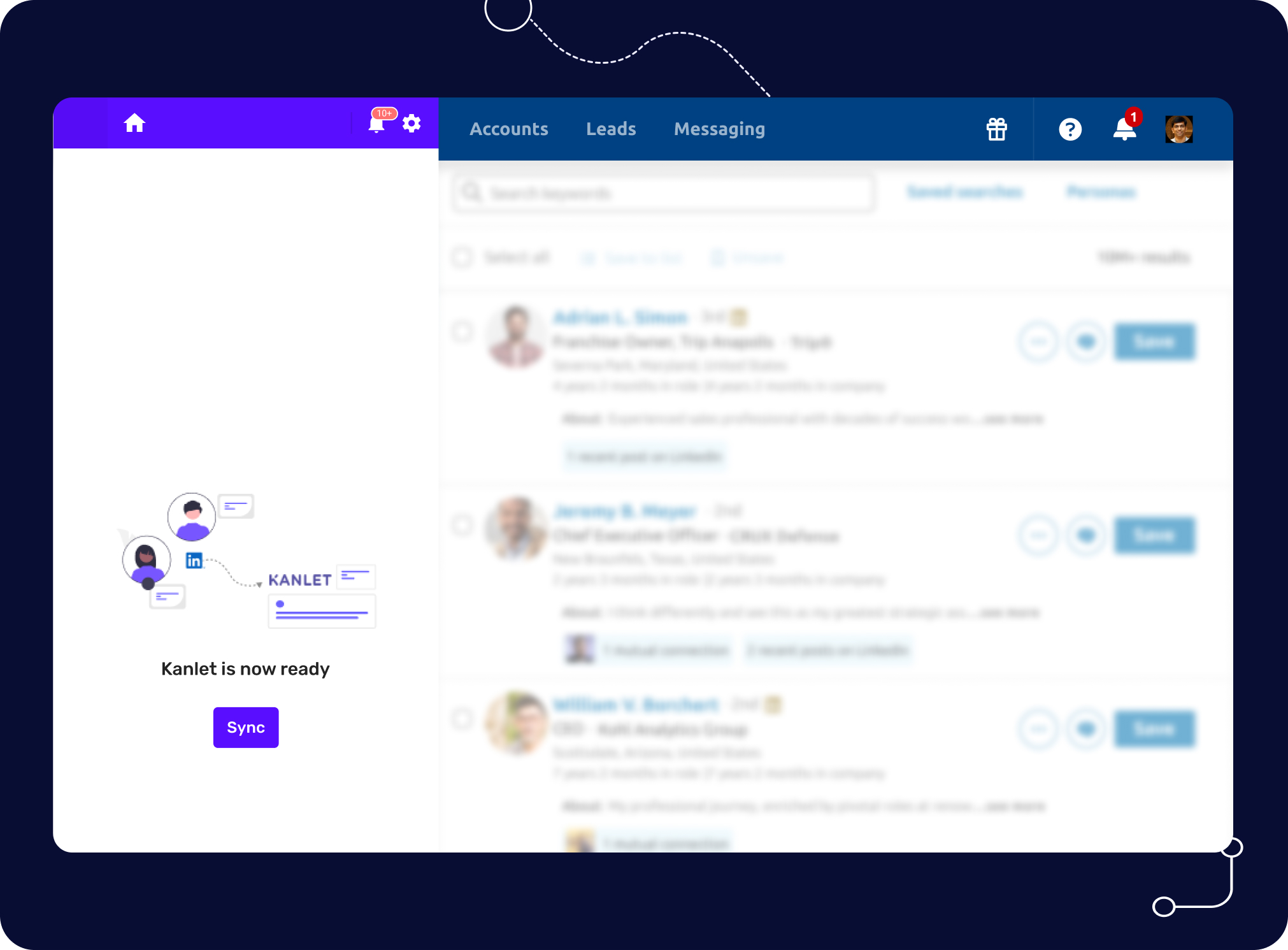 Kanlet Chrome extension works best alongside Sales Navigator and Gmail.