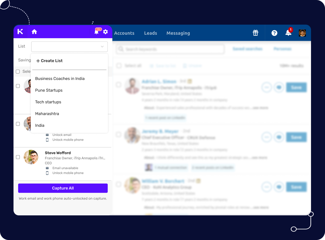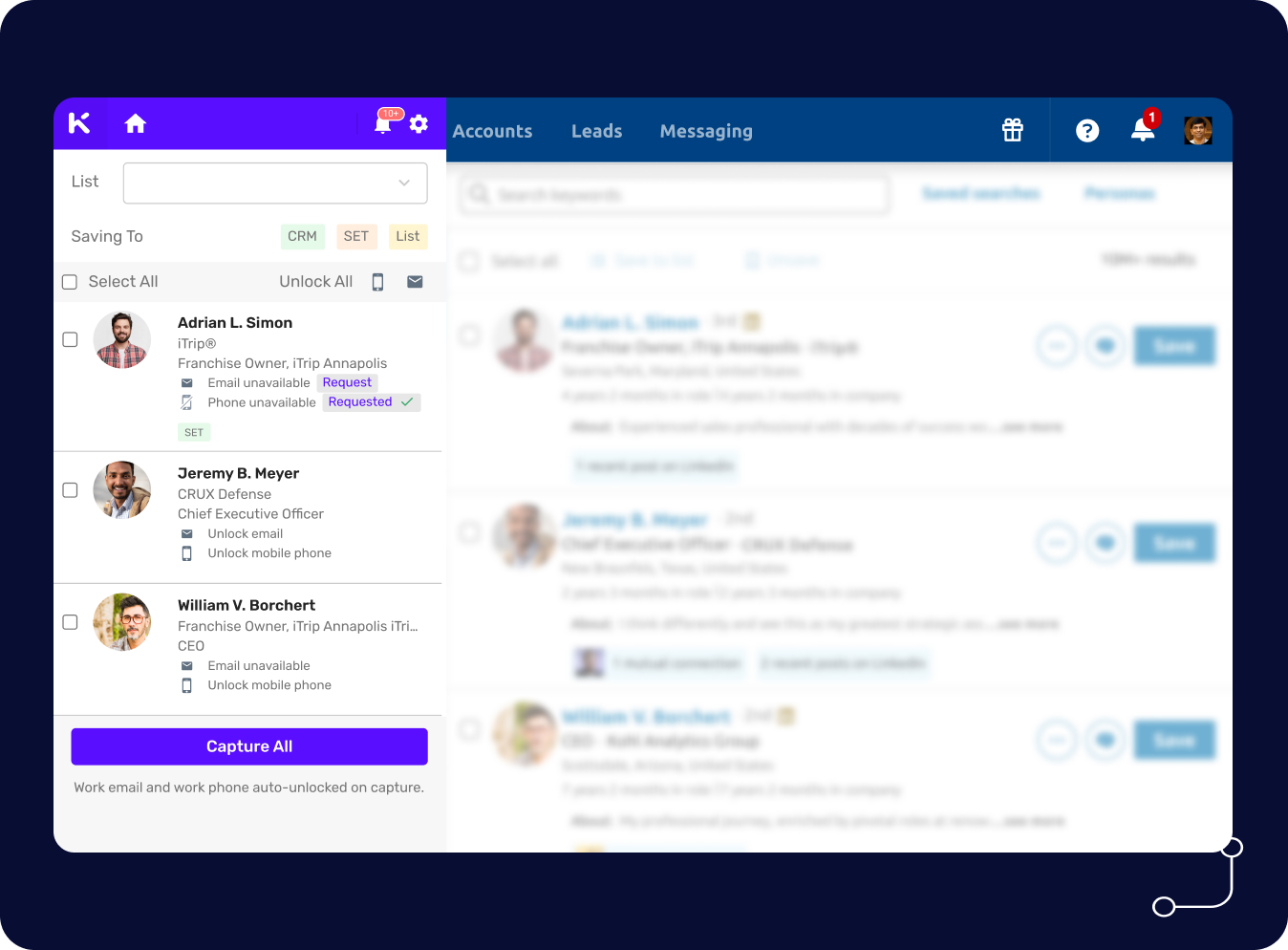 See your searches and lists mirrored in Kanlet with contact data in real-time.